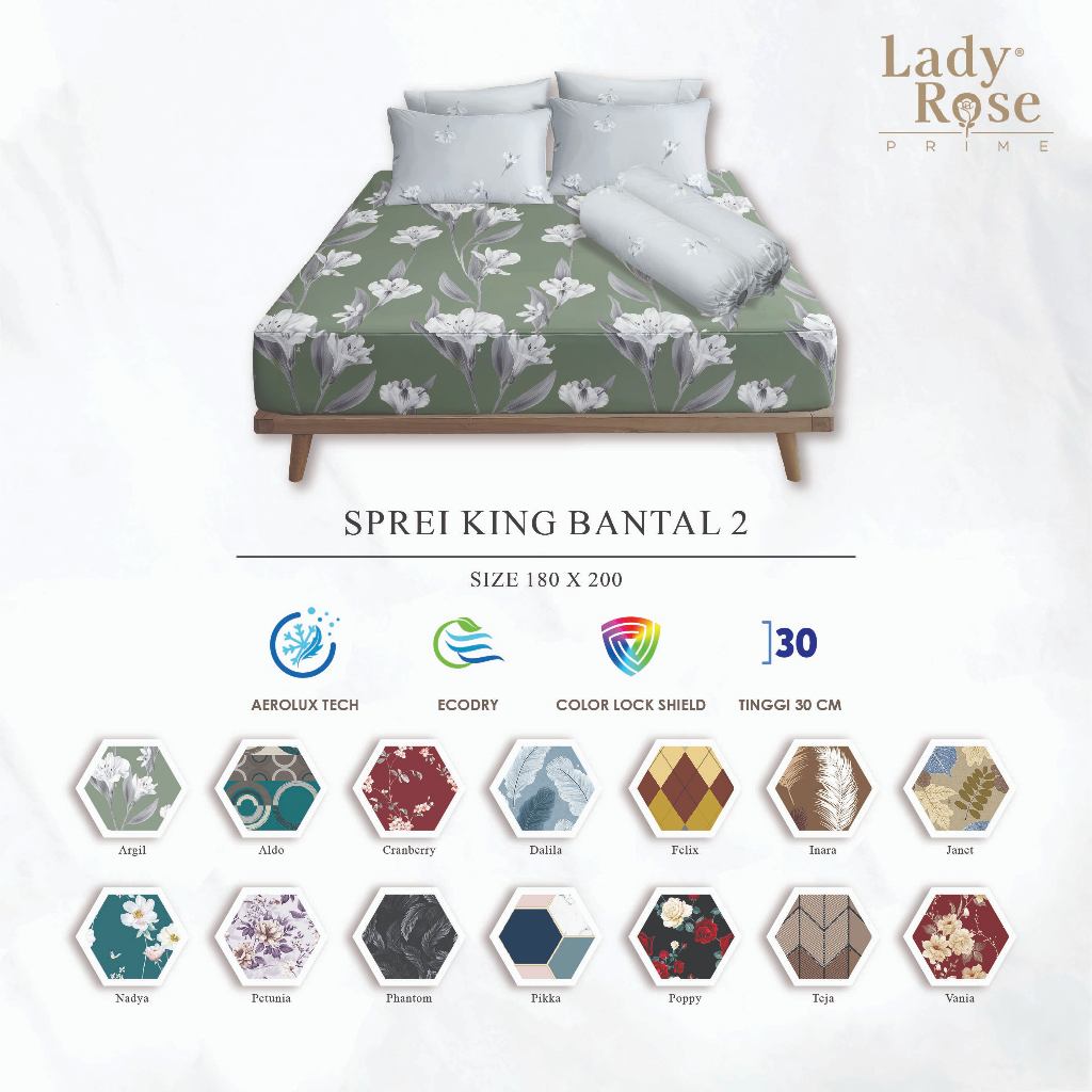 Lady Rose Prime - Sprei King 180x200 Tinggi 30cm Bantal 2 "Live"