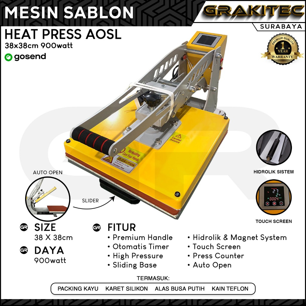 Mesin Press Sablon Kaos 38x38 AOSL OTOMATIS Auto Open Sliding Grakitec