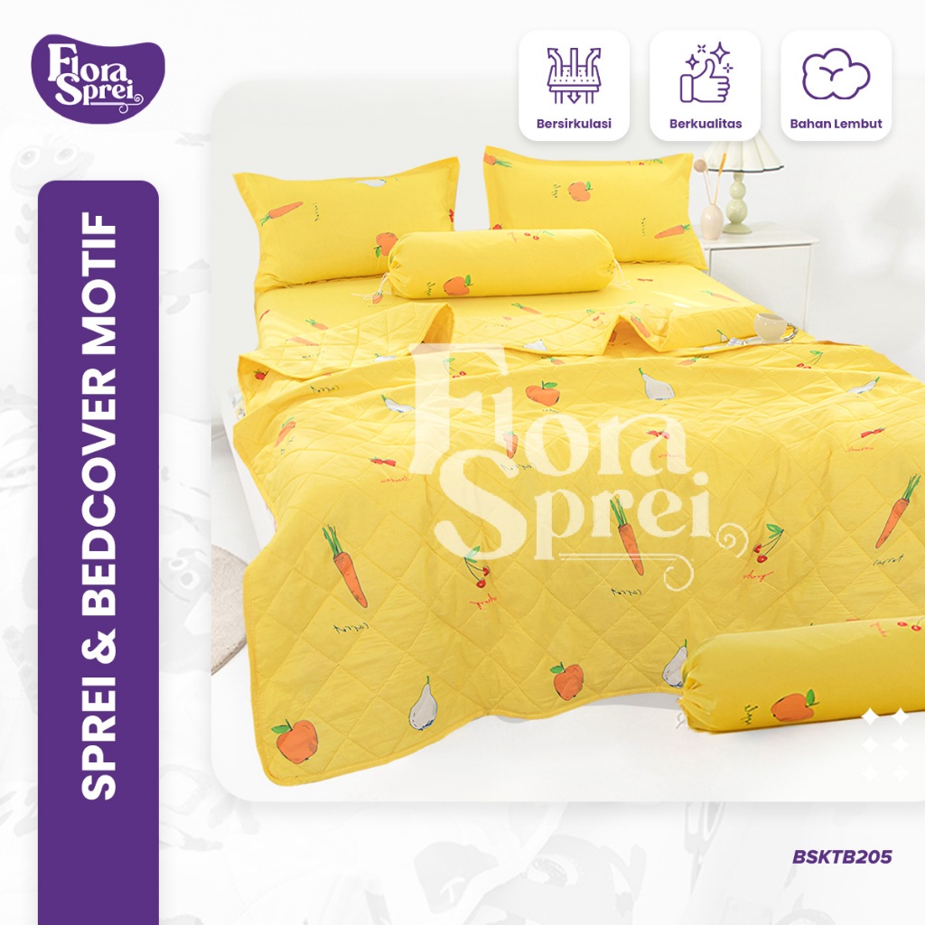 FLORA BedCover Set Sprei Set Microtex Set Sprei Selimut Sarung Bantal Guling Multi Variasi