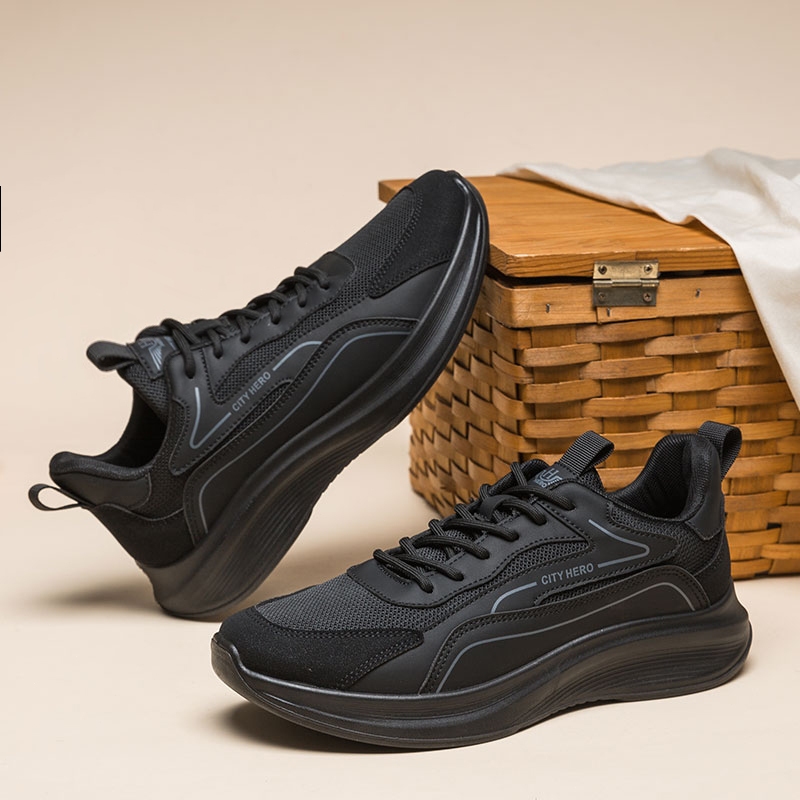 Sneakers Pria Minimalis Bersol Tebal - Sepatu Kets Hitam Style Modern Untuk Kuliah Dan Kerja Sepatu