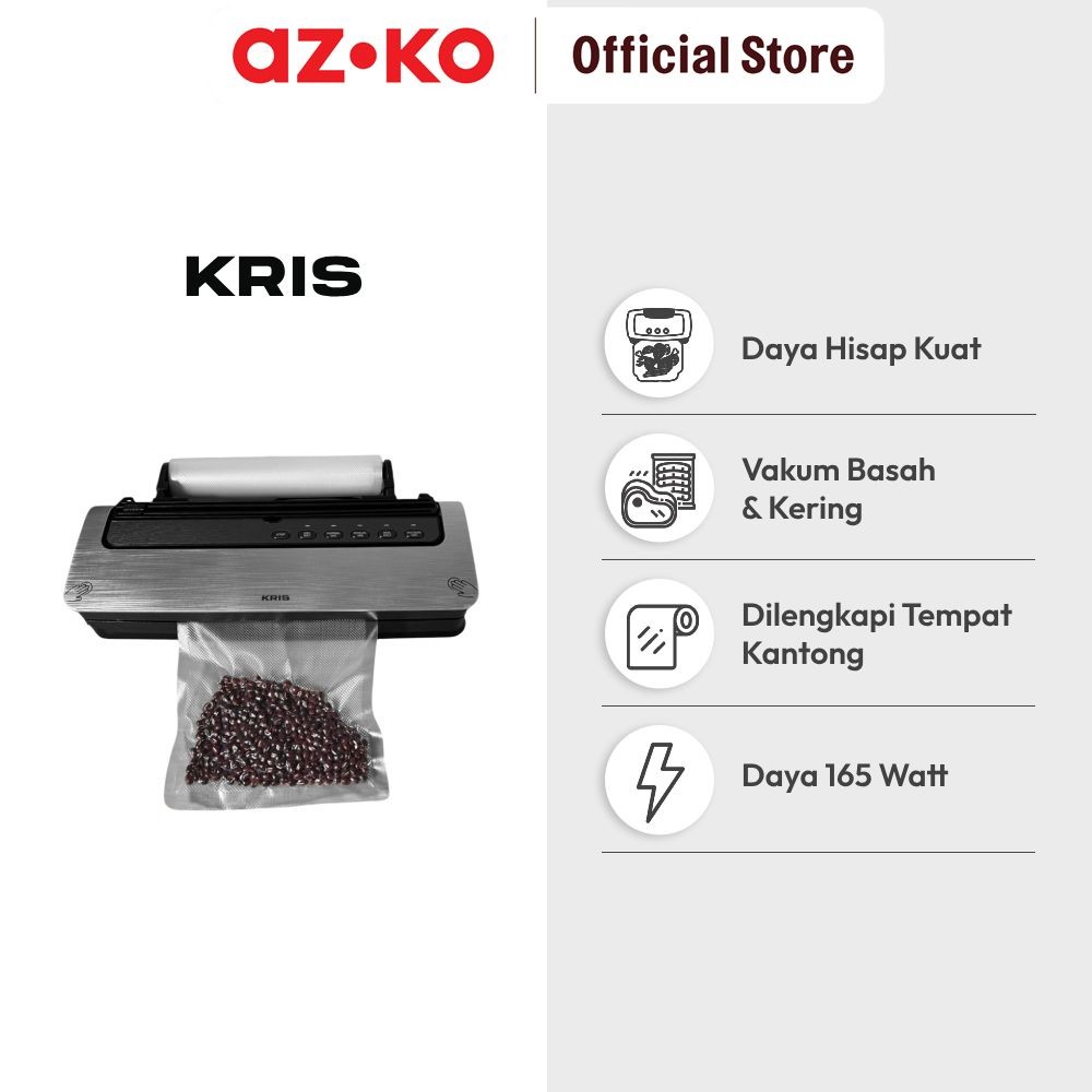 AZKO Kris 30 cm Vacuum Sealer Dengan Penyimpanan - Abu-Abu Tua Mesin Pengemas Udara Air Tight Sealing Machine Clothes Pa