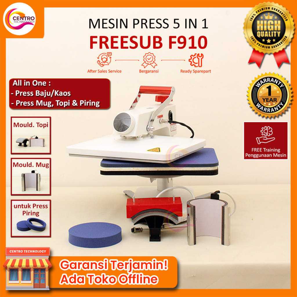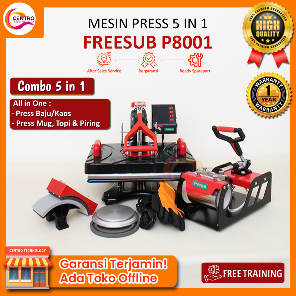 Mesin Press COMBO All In One (5in1/8in1) | (Cetak Mug, Kaos, Topi, & Piring) FreeSUB P8100 / P8001x - FreeSUB F910