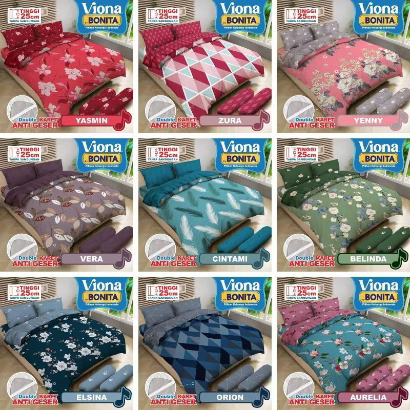 Bedcover Viona by Bonita Set Plus Sprei Flat UK.180x200 Tinggi 25cm