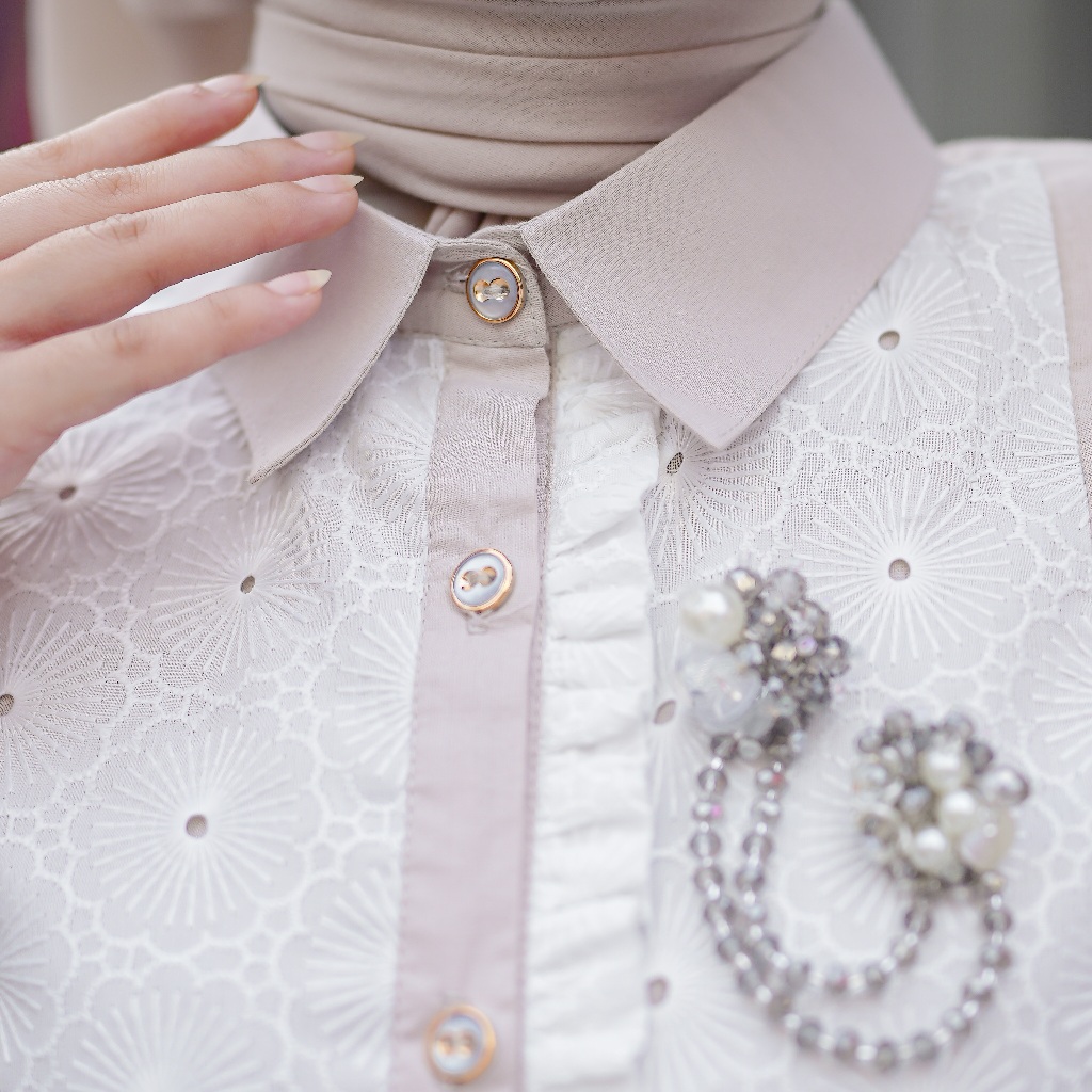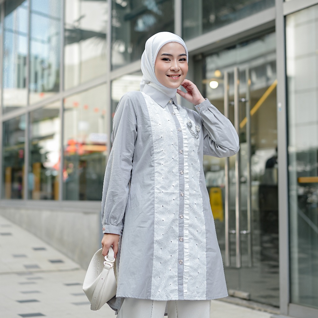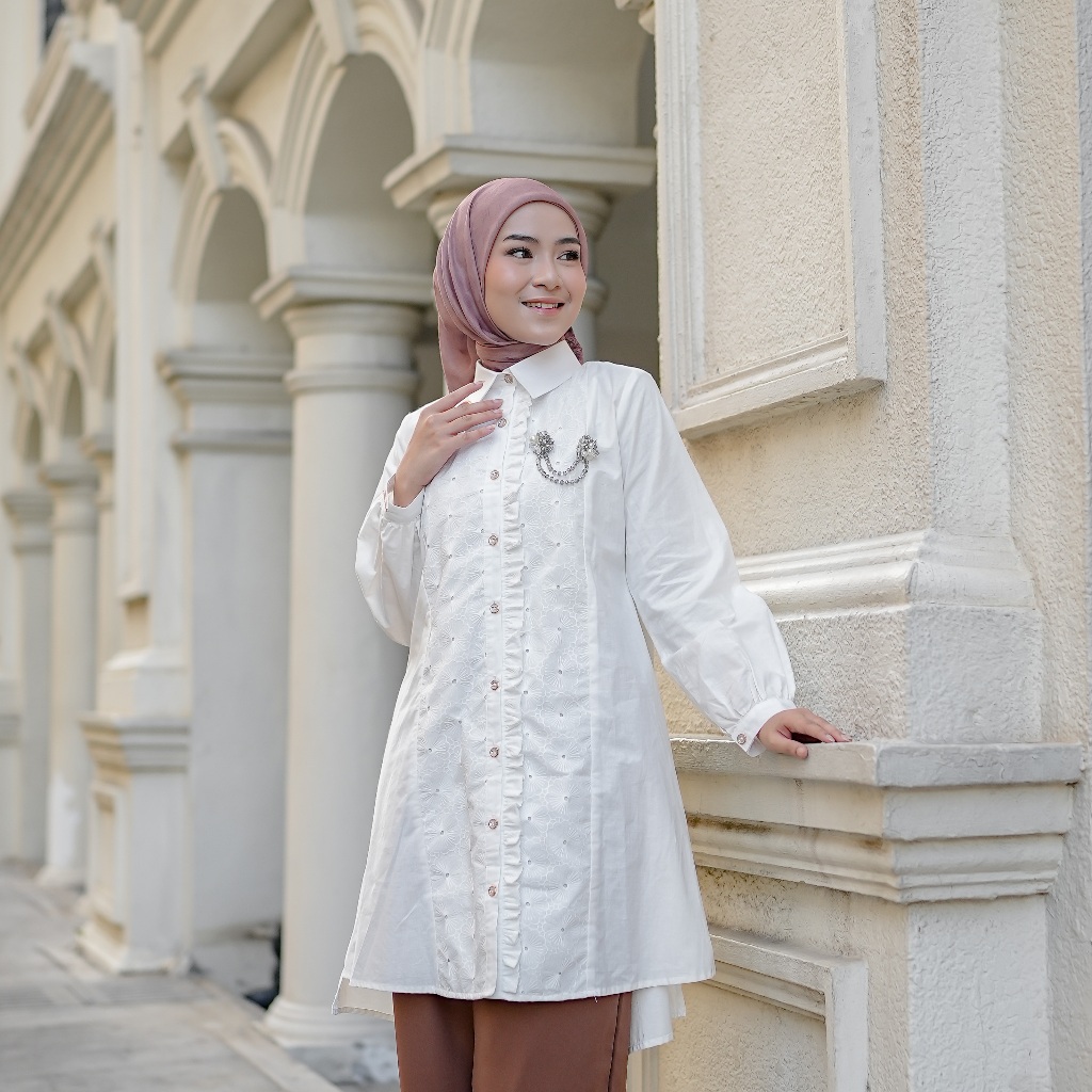 Nibras Hijab X Kalasiris Atasan Tunik Blouse Wanita Lengan Panjang Katun Bordir - Noura Tunic