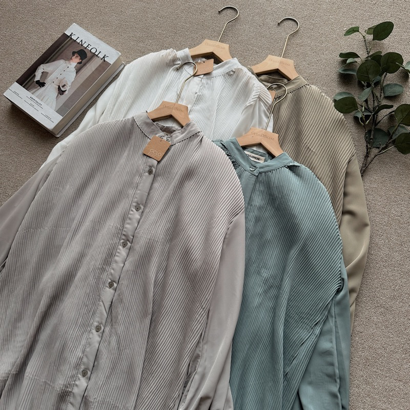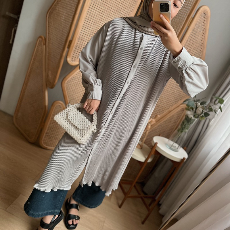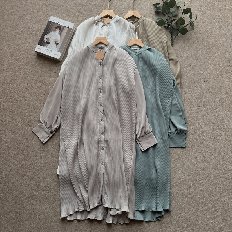 Oclo Plisa Tunic Plisket Mini Polos Casual Wolfis Atasan Tunik Wanita Lengan Panjang Ocl02982