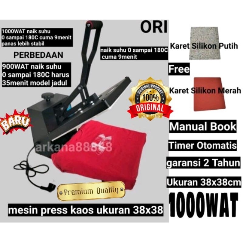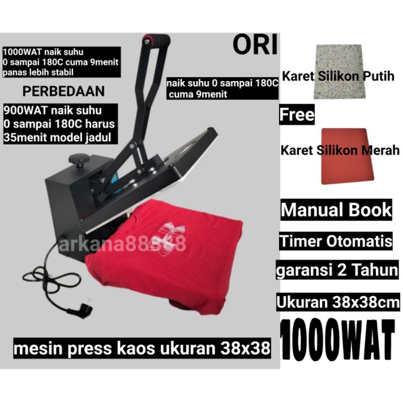 mesin press kaos 38x38 1000WAT dapat 2 karet silikon