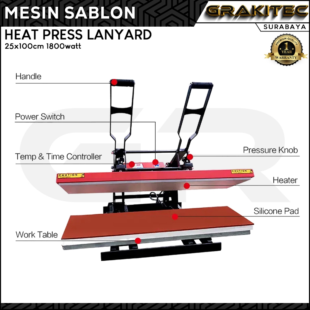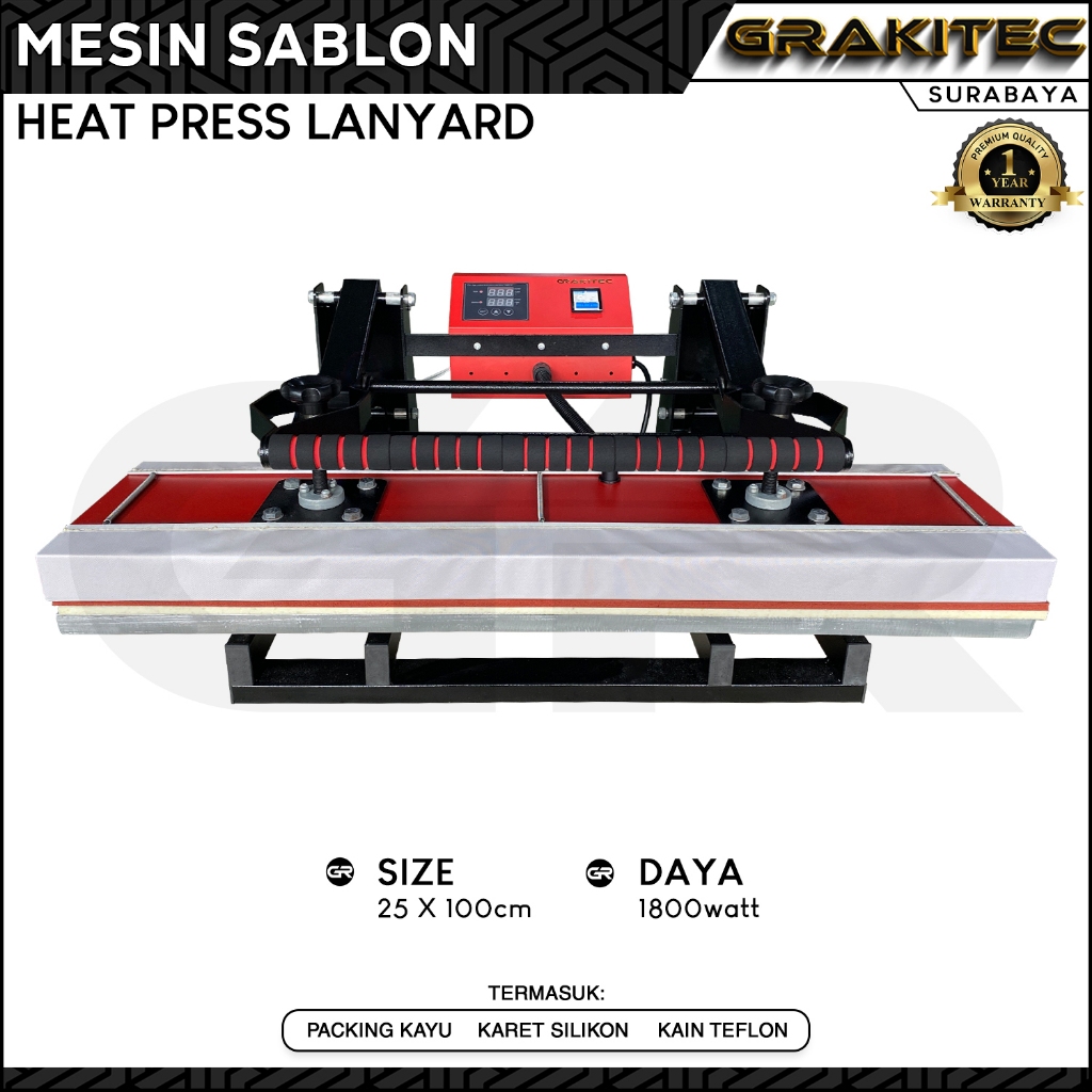 Mesin Press Sablon Lanyard + Roller 25 x 100 cm 1800 Watt- Mesin Heat Press Tali Lanyard