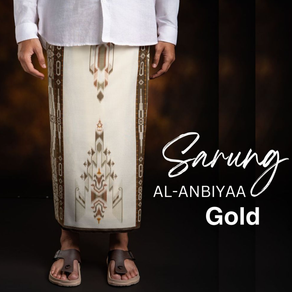 Sarung Katun Pria Al Anbiyaa Seri Gold Dasar Warna Cream Bahan Halus
