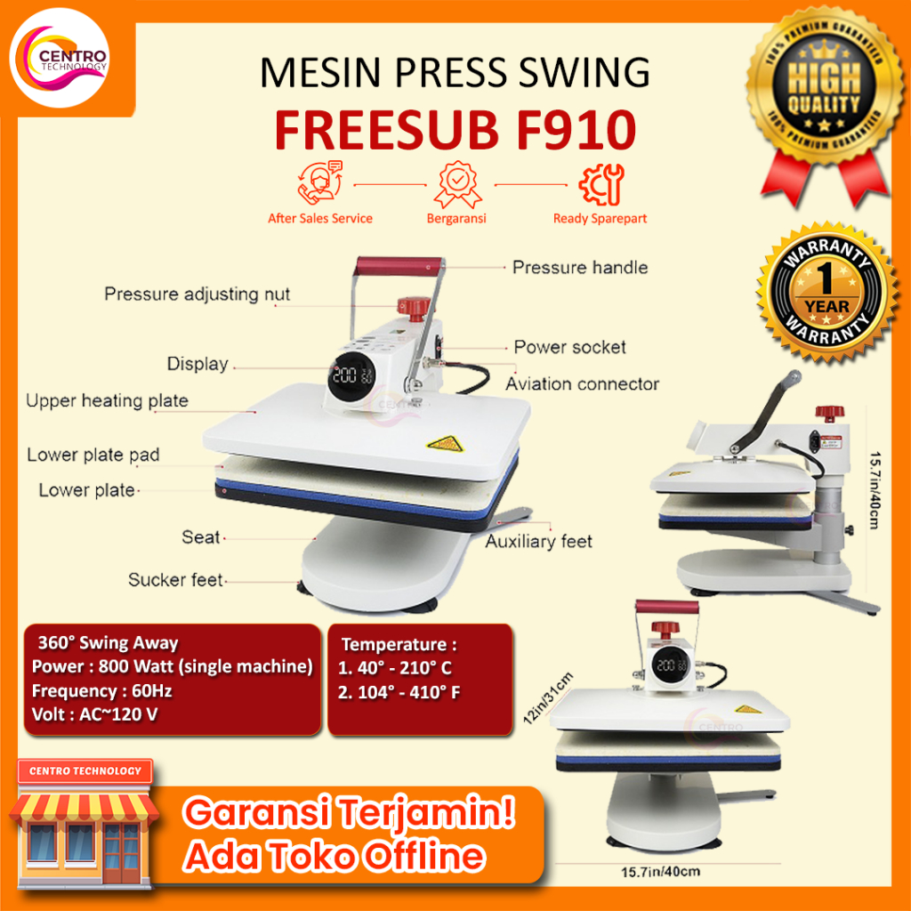 Mesin Press Kaos Swing Digital 29x38 CM | Swing Heat Press Machine Digital Premium (Bisa untuk press DTF, DTG, Sublimasi