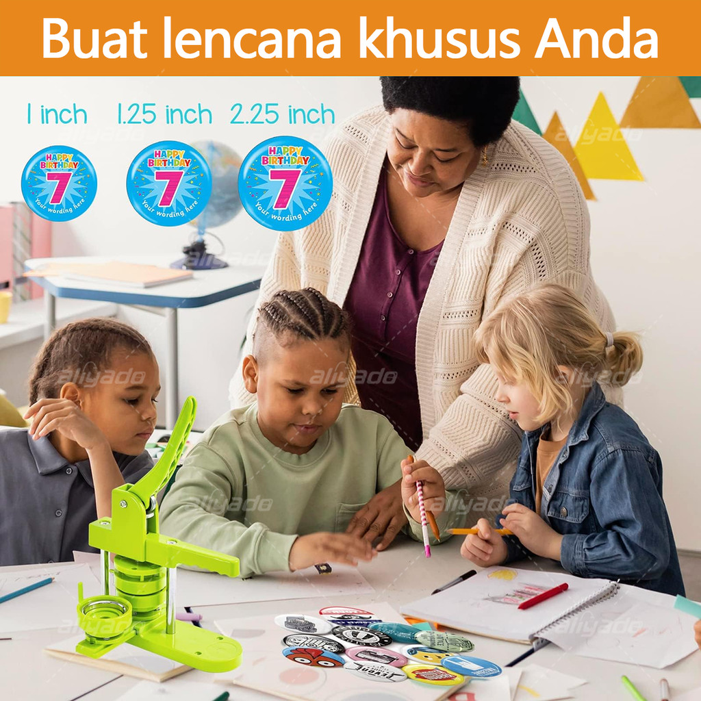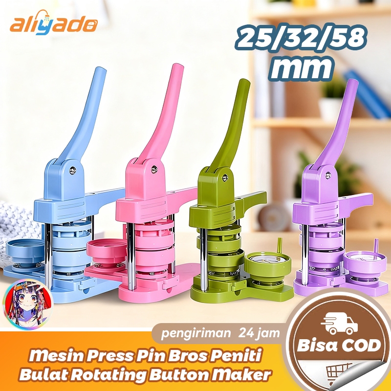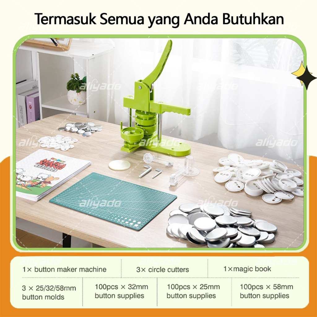 [3in1 BUNDLING] Mesin Press Pin Badge, Cermin 58mm & Gantungan Kunci - Set Lengkap Bahan Model Push-Pull / Putar, Siap