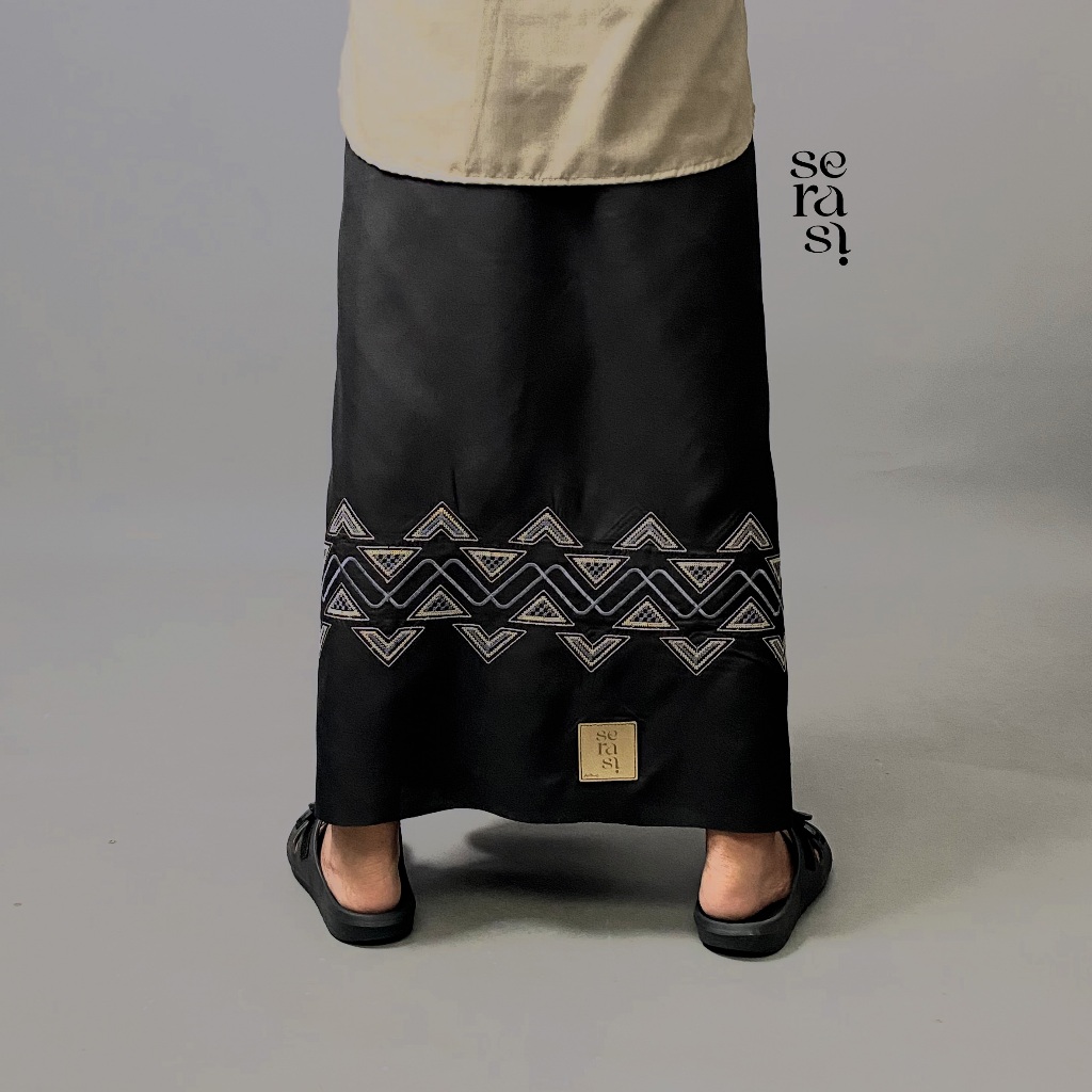 Serasi - Sarung Bordir Motif Ombak Sarung Pria Warna Hitam Bordir Sarung Sholat Bordir Timbul Bono