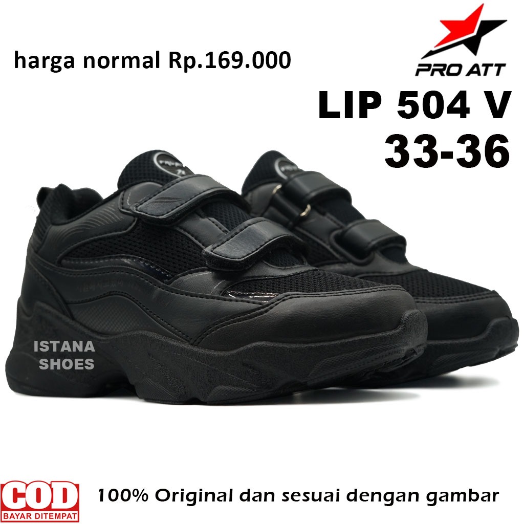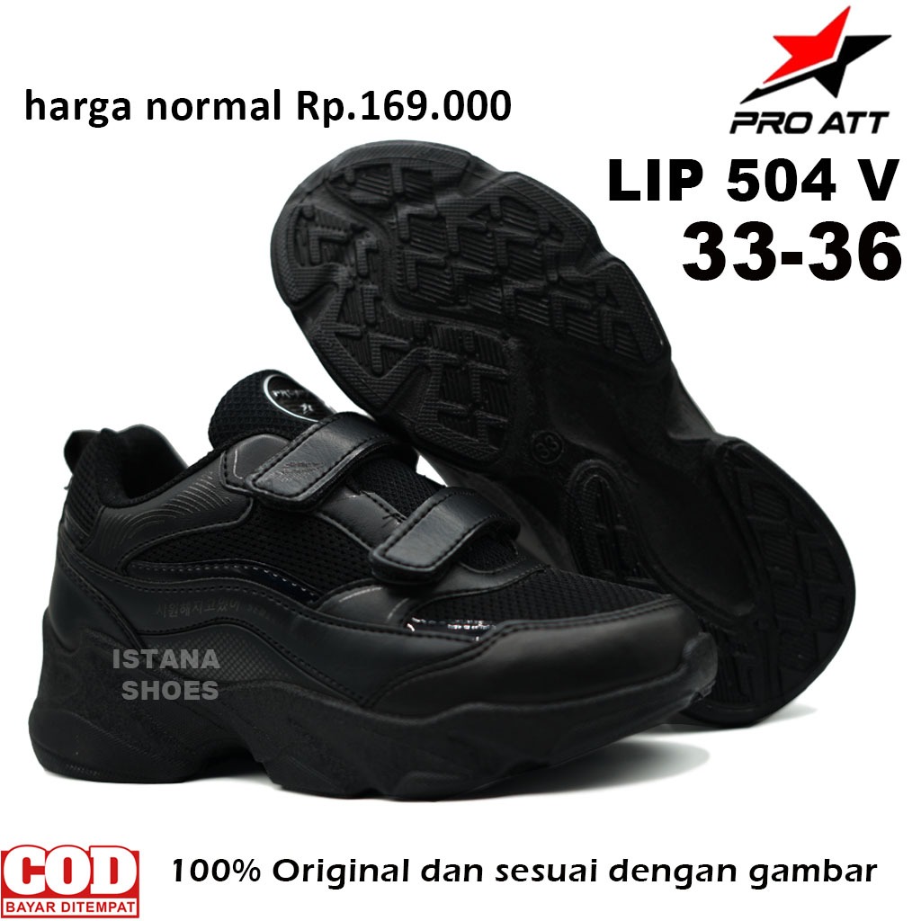 SEPATU SEKOLAH SD SMP PRO ATT LIP 504 FULL HITAM PEREKAT SNEAKERS