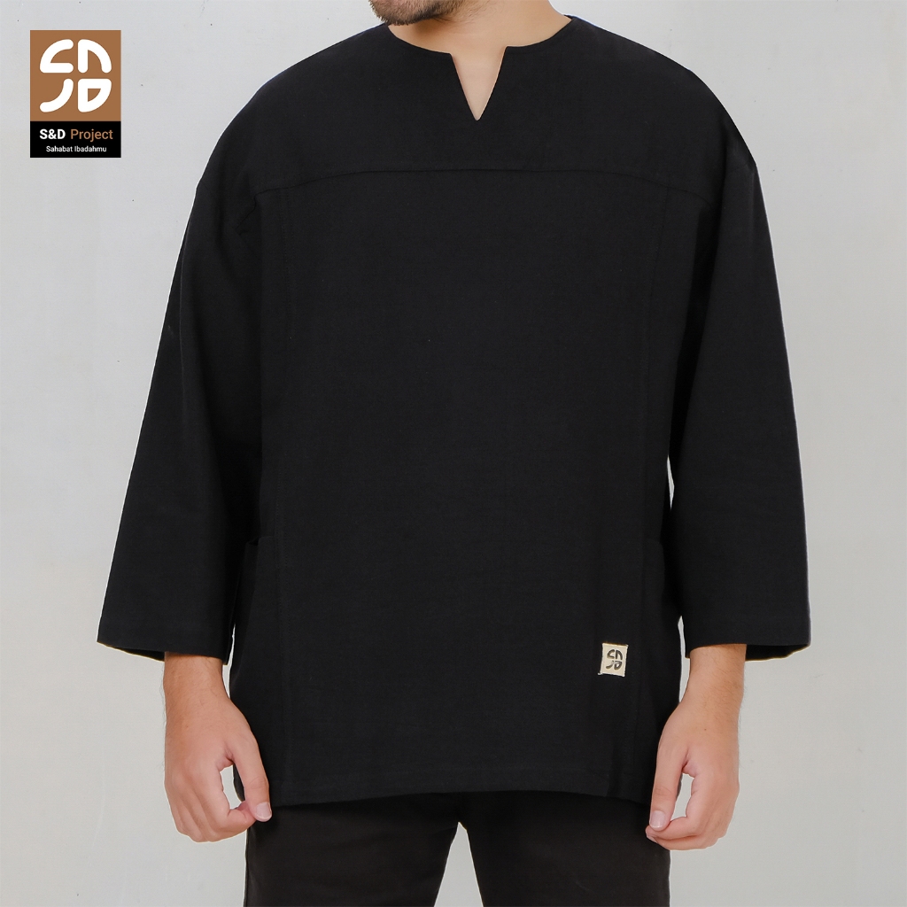 S&D Project Koko Muslim Ghassan Linen Fumiko Premium Hitam M-Xl Pria Dewasa Lengan Panjang Oversize