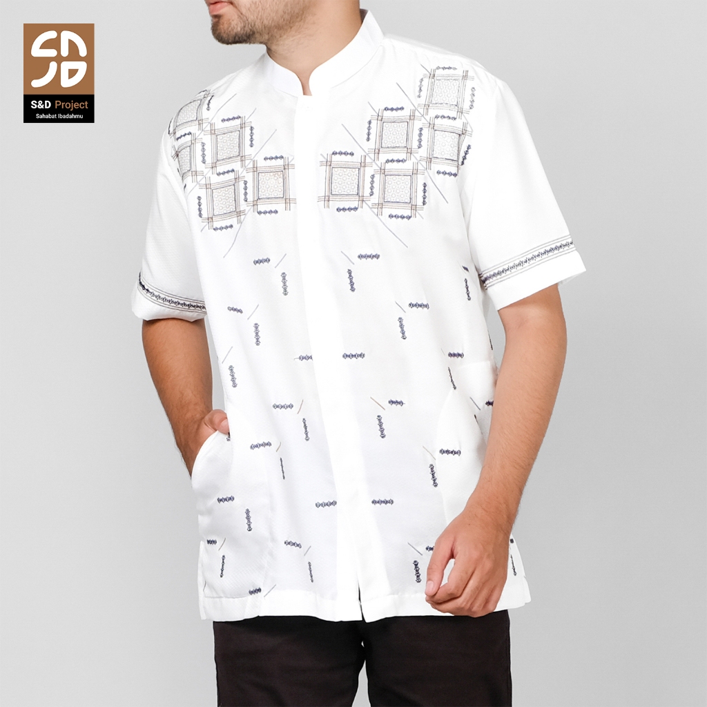 S&D Project Koko Muslim Seri 36 Bordir Polikatun Putih Tulang Jumbo M-4Xl Pria Dewasa Lengan Pendek