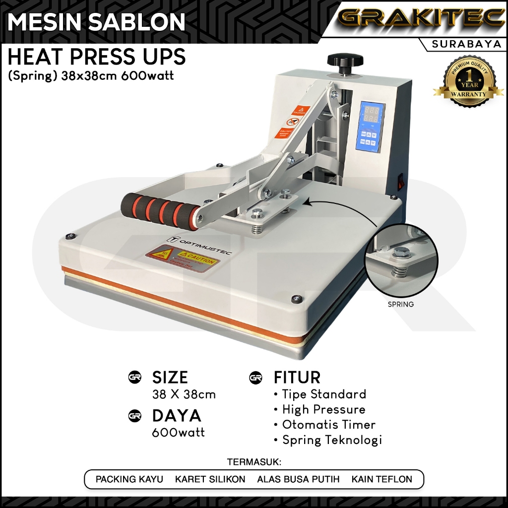 Mesin Press Sablon Kaos 38x38 600 Watt Premium Extra Sliding GRAKITEC all varian
