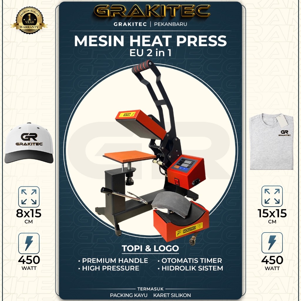 Mesin Press Sablon Mini Logo Label 15x15 cm & Press Sablon Topi Premium - 2 in 1 CAP & LOGO HEAT PRESS untuk press kaos,