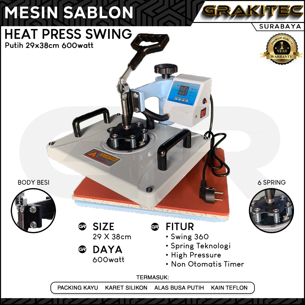 Mesin Press Sablon Kaos 29x38 CM Sablon Digital Small Swing Heat Press All Varian Grakitec