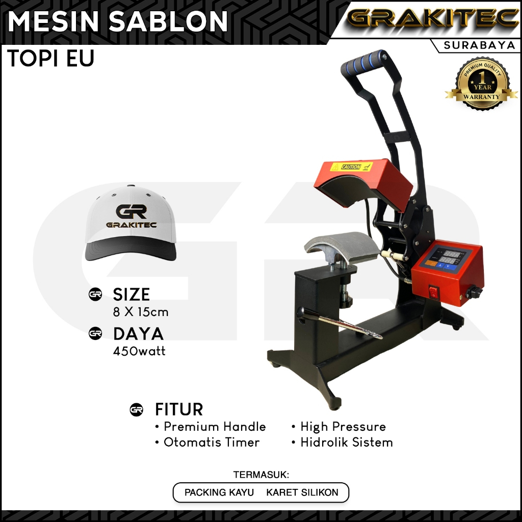 Mesin Press Sablon Mini EU Logo Label 15x15 cm & Press Sablon Topi Premium - 2 in 1 CAP & LOGO HEAT PRESS untuk press ka