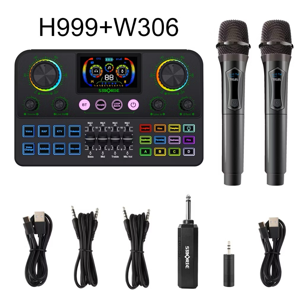 Siborie H999 Soundcard+W306 Two Wireless MicroPhone Full Set Of Equipment Audio USB Mixer Bluetooth With Receiver