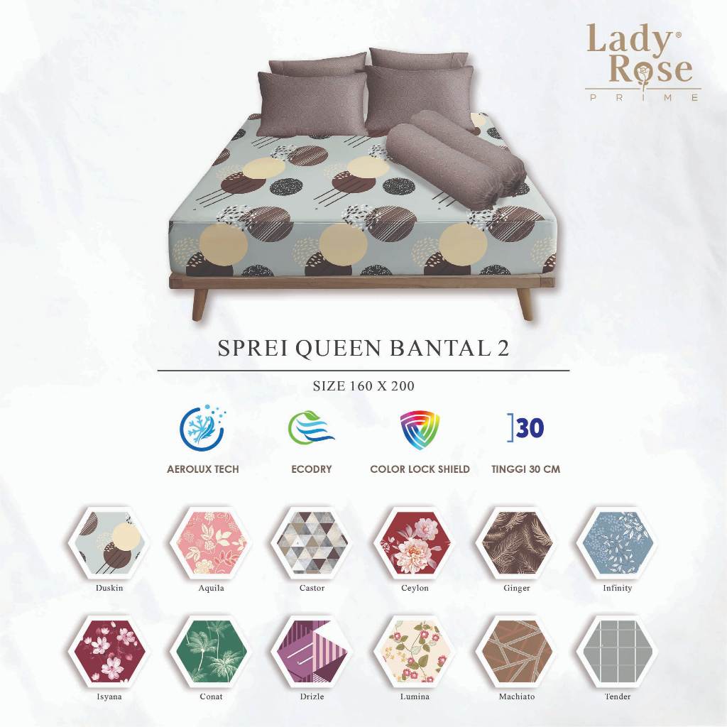 Lady Rose Prime - Sprei Queen 160x200 Tinggi 30Cm Bantal 2 "Live"