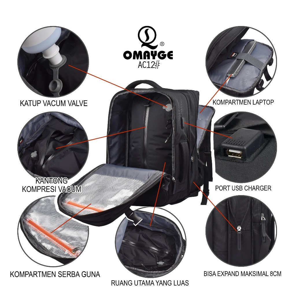 Omayge AC12 Tas Travel Tas Ransel Vacuum Compression + FREE Vacuum & Plastik & Rain Coat