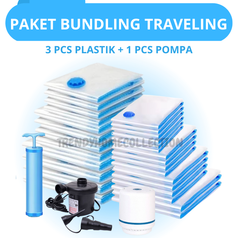 Vacum Bag Bundling Traveling 3 Pcs Vacum Bag + 1 Pompa Vacum / Vacuum Kantong Pakaian Plastik