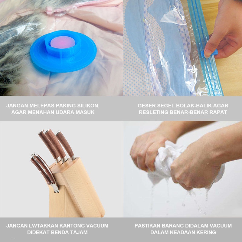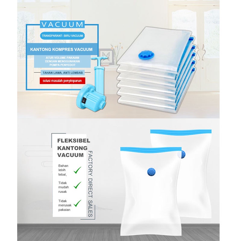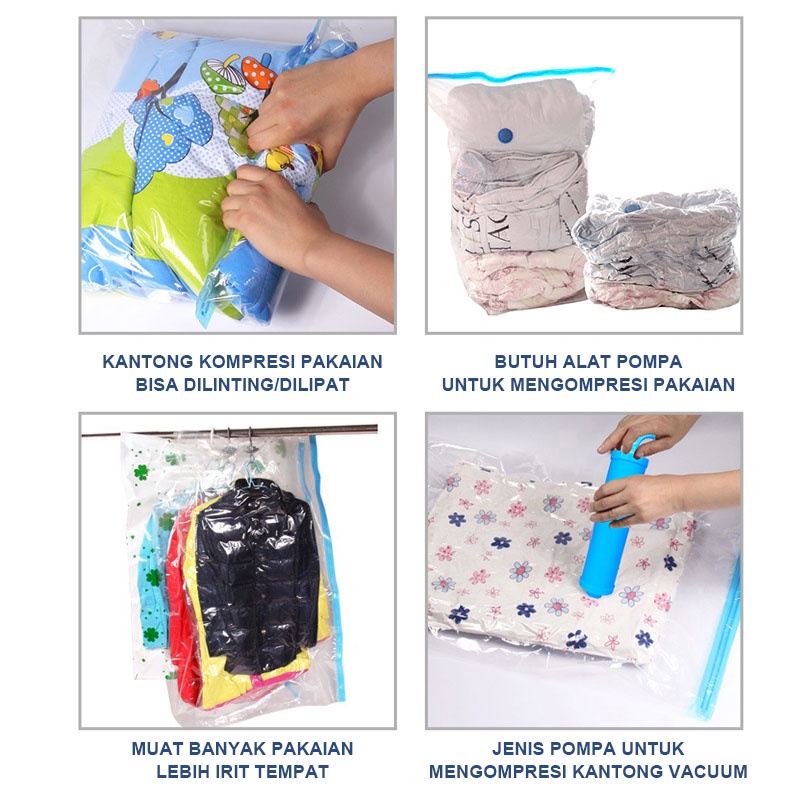 U-Living Plastik Vacuum Kantong Pakaian Travel Transparan Anti-air Dipakai Berulang PV002