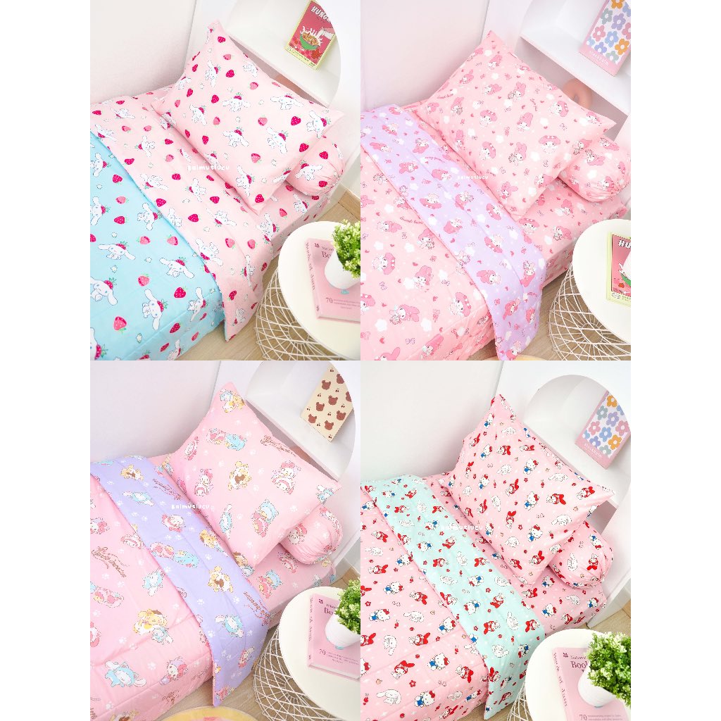 Bed Cover (Tanpa Sprei) 150X220 200x240cm | Motif Two Tone Karakter Cinnamoroll Kuromi My Melody Ukuran Single Double Lembut