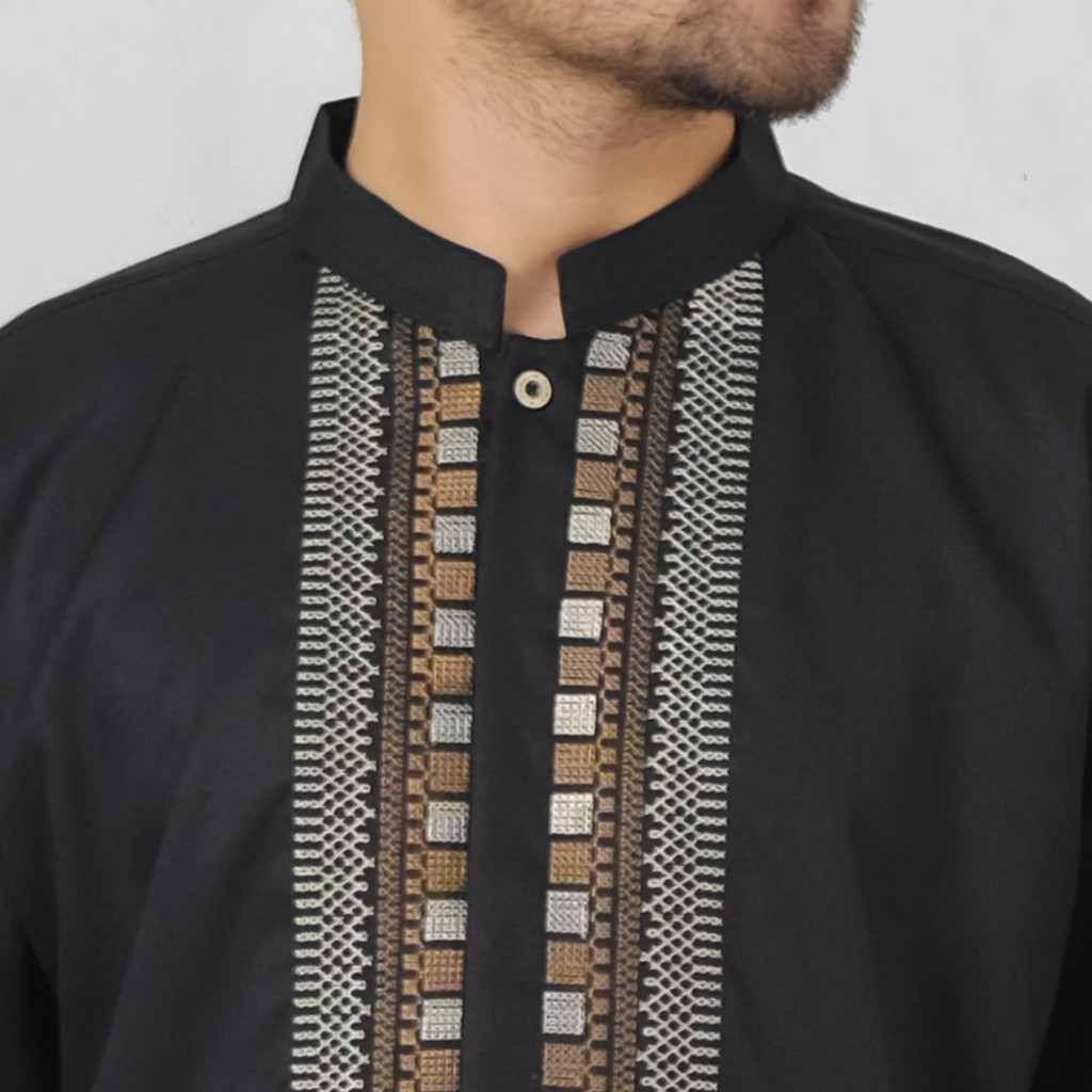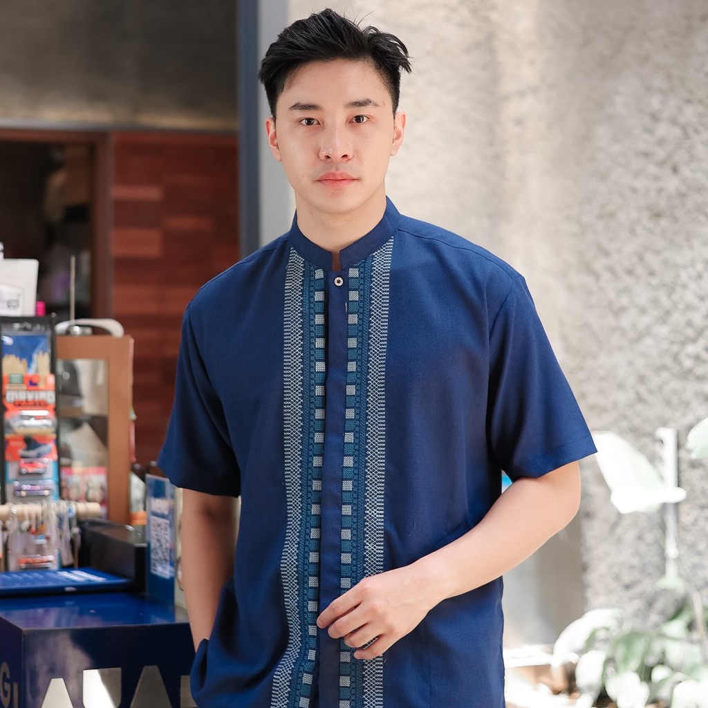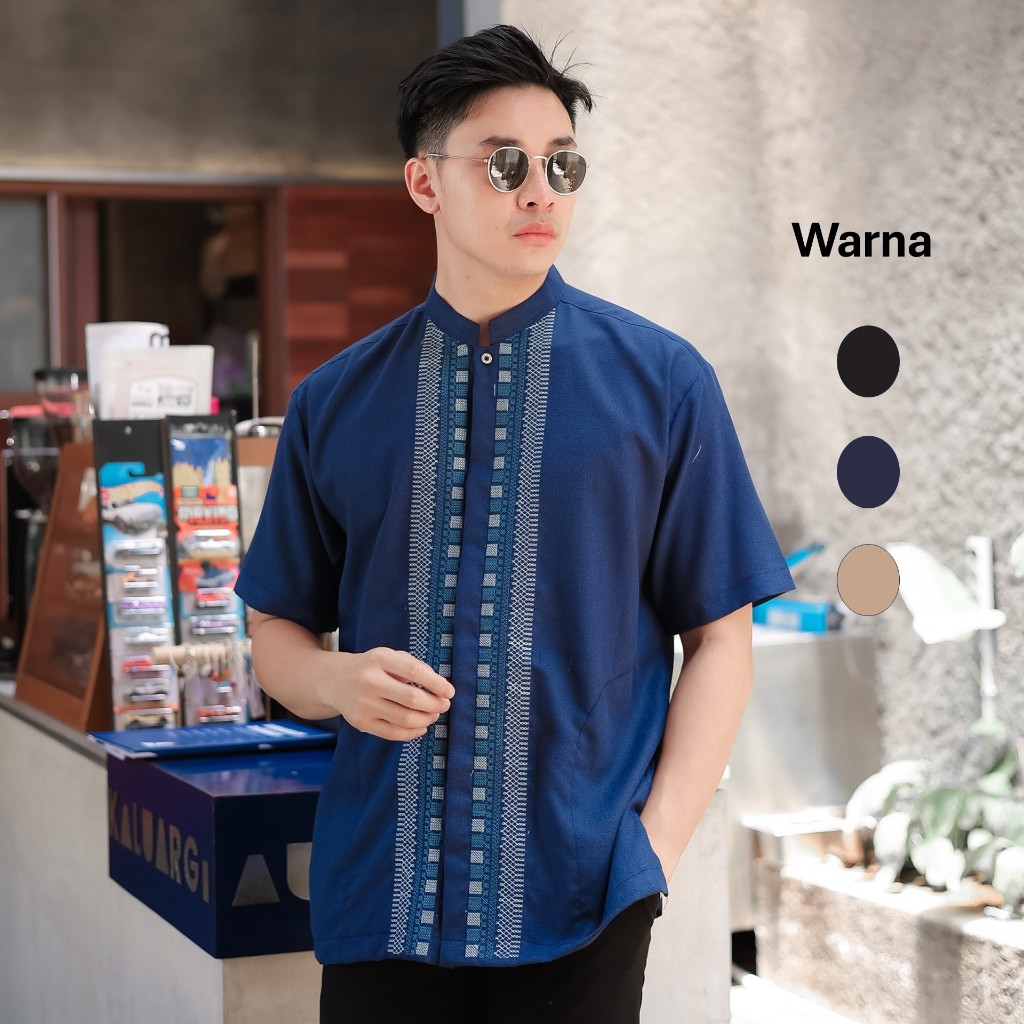 Uzma Baju Koko Kemko Muslim Pria Katun Madinah Lengan Pendek Warna Navy Krem Hitam