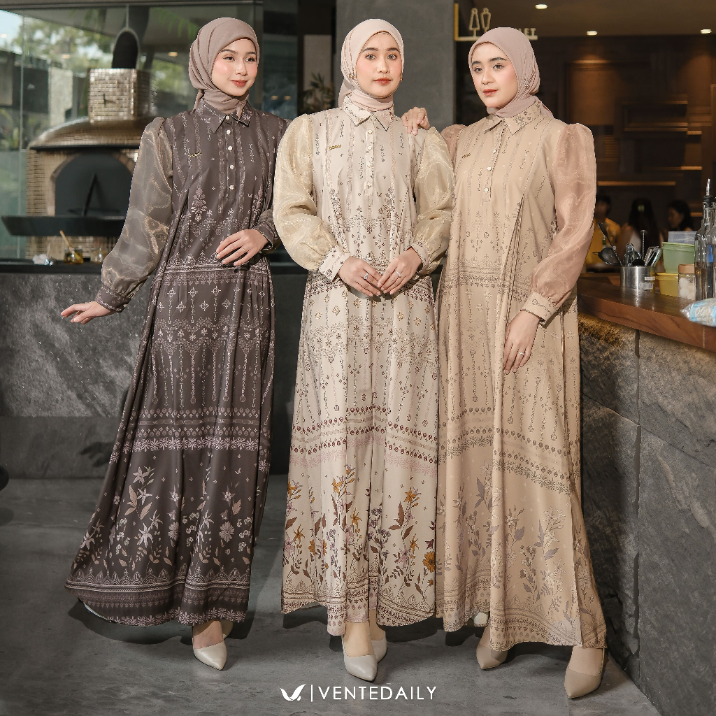 Ventedaily - Andira Maxy Exclusive Gamis Kondangan Wanita Elegan Dress Pesta Mewah Organza Busui