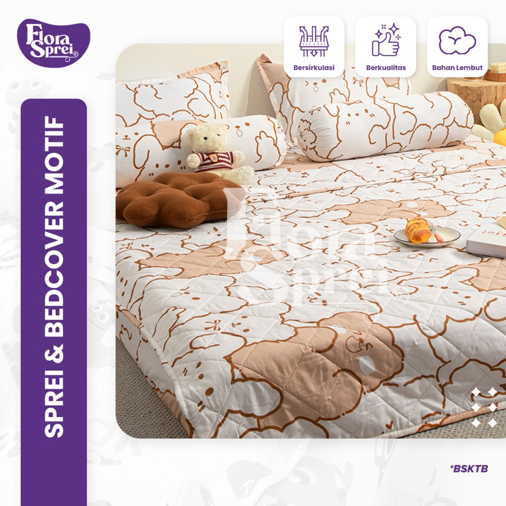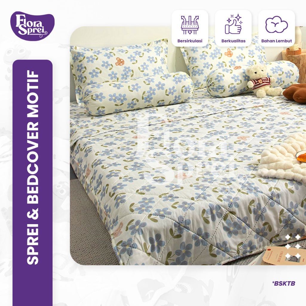 FLORA BedCover Set Sprei Set Microtex Set Sprei Selimut Sarung Bantal Guling Multi Variasi