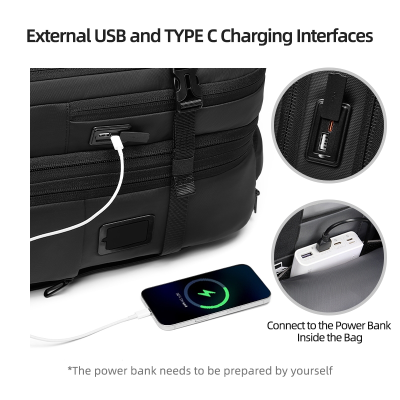 SEA CHOICE Kantong Vakum Ransel 2-in-1 Troli Multifungsi-Ekspansi, USB Charging,Anti Air,Anti Maling