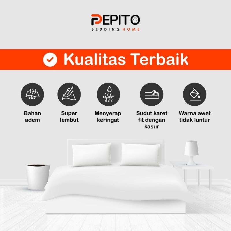 Sprei Katun Adem - Tinggi 30 cm - 140x200 / 160x200 / 180x200 / 200x200 - Pepito