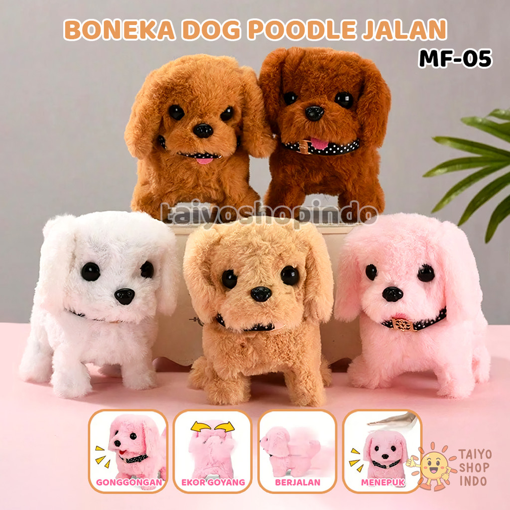 TAIYO Boneka Anjing Jalan Suara Elektrik Bunyi Nyala Bergerak Poodle Pudel Dog Doll Plush Mainan Murah Gratis Ongkir