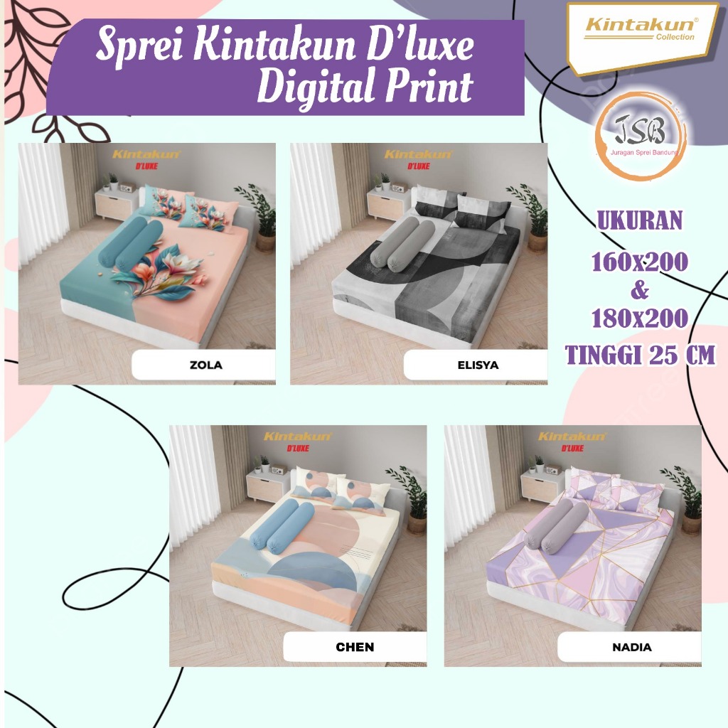 Kintakun Sprei D'luxe Digital Print King Size Uk 180X200 Tinggi 25cm / 160x200 Queen size New Edition Seprai Kintakun King / Sprei No 1 / Sprei Kintakun Deluxe
