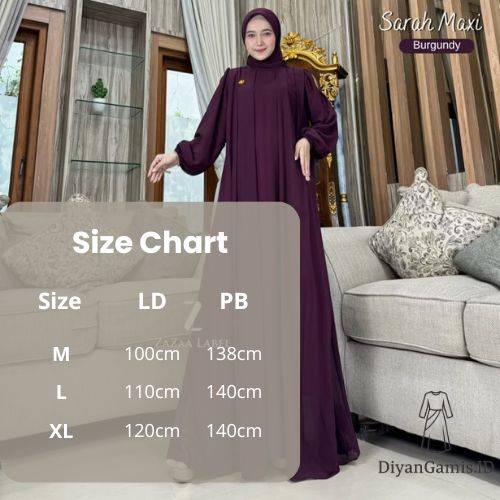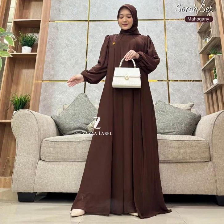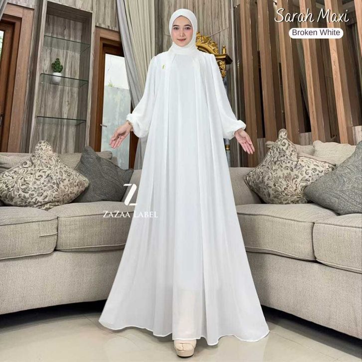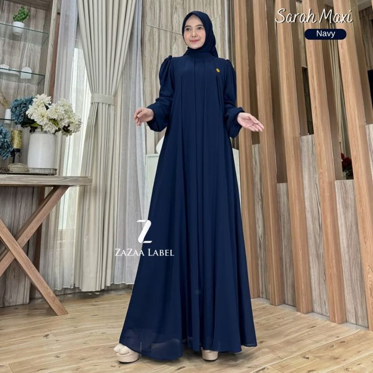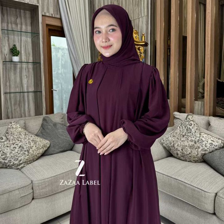 Sarah Maxi Gamis Hijab Motif Polos Bahan Ceruty Non Busui Lengan Balon Elegan DiyanGamis