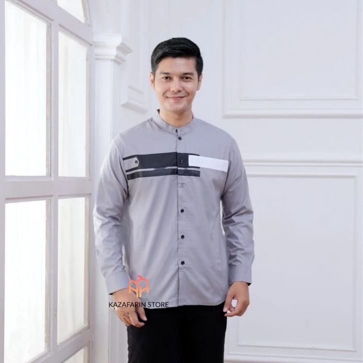 Baju Koko Pria Lengan Panjang Motif Yordan Kombinasi Warna