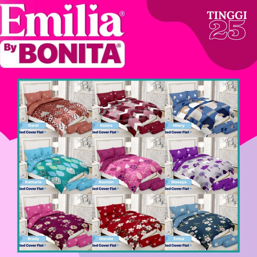 Emilia - Bed Cover SET SPREI FITTED King T25 (180x200) tinggi 25 by Bonita OFFICIAL Terlaris Pilihan