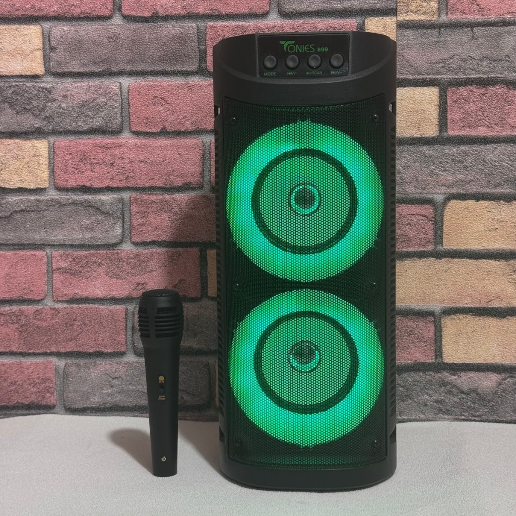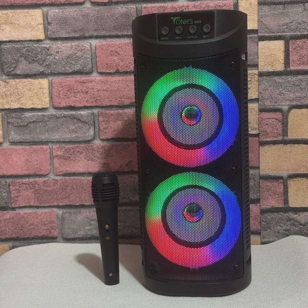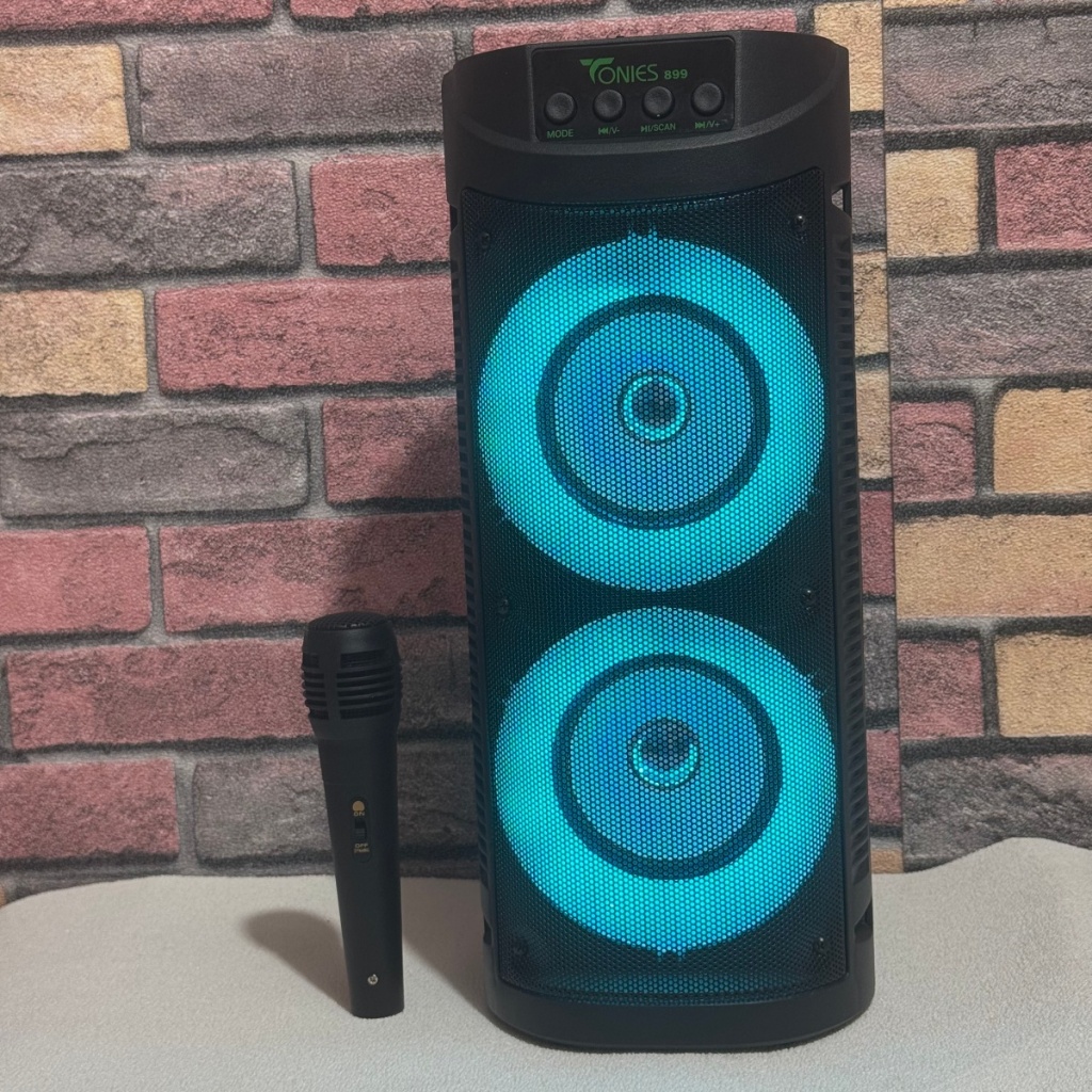Bluetooth Speaker 8 Inch LED Bonus Mic Portable Tonies-899 Full Bass Microphone Karaoke Speaker