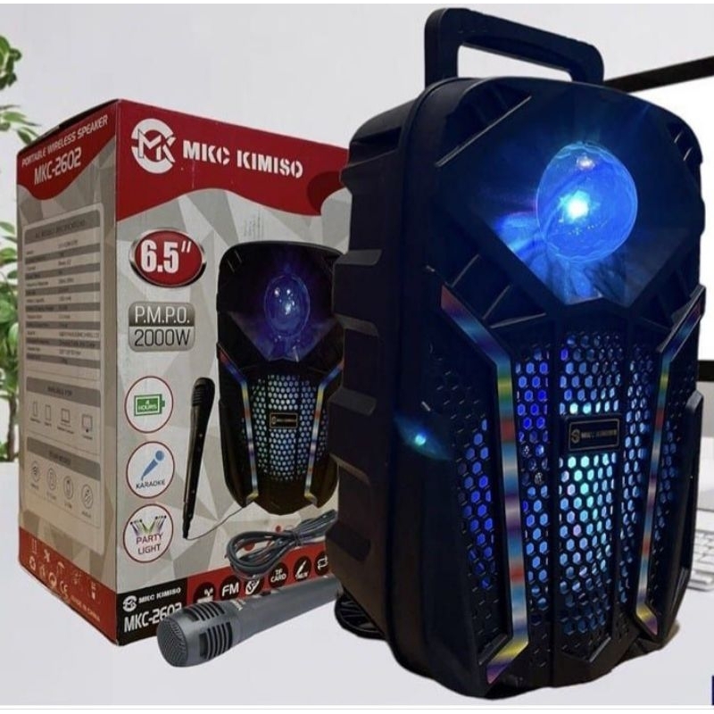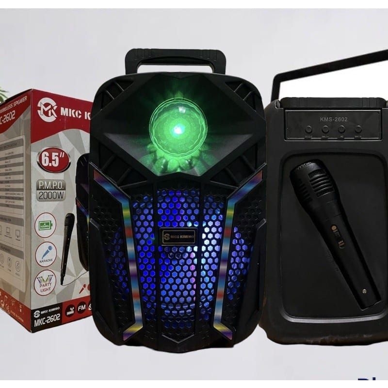Speaker Bluetooth 2602 Bonus Mic 6,5Inci Salon Aktif Portable Radio Fm Speaker Wireless Led