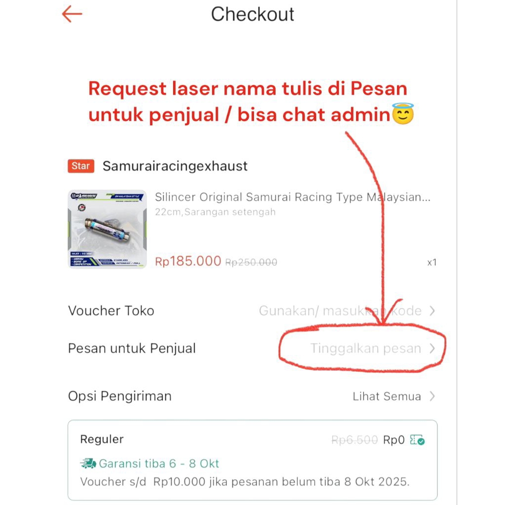 Silincer Original Samurai Racing Type Malaysian Style tembak bulan inlet 50mm
