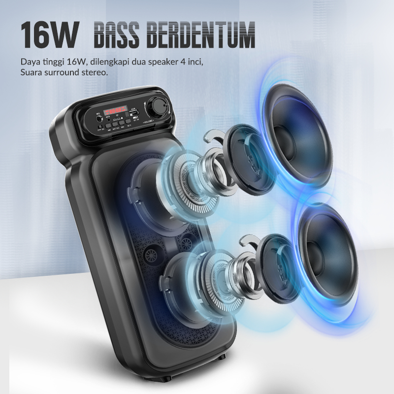 MAIKET Speaker Bluetooth Karaoke Super Bass Speaker Portable Salon USB/FM/AUX/RGB Garansi 3 Tahun