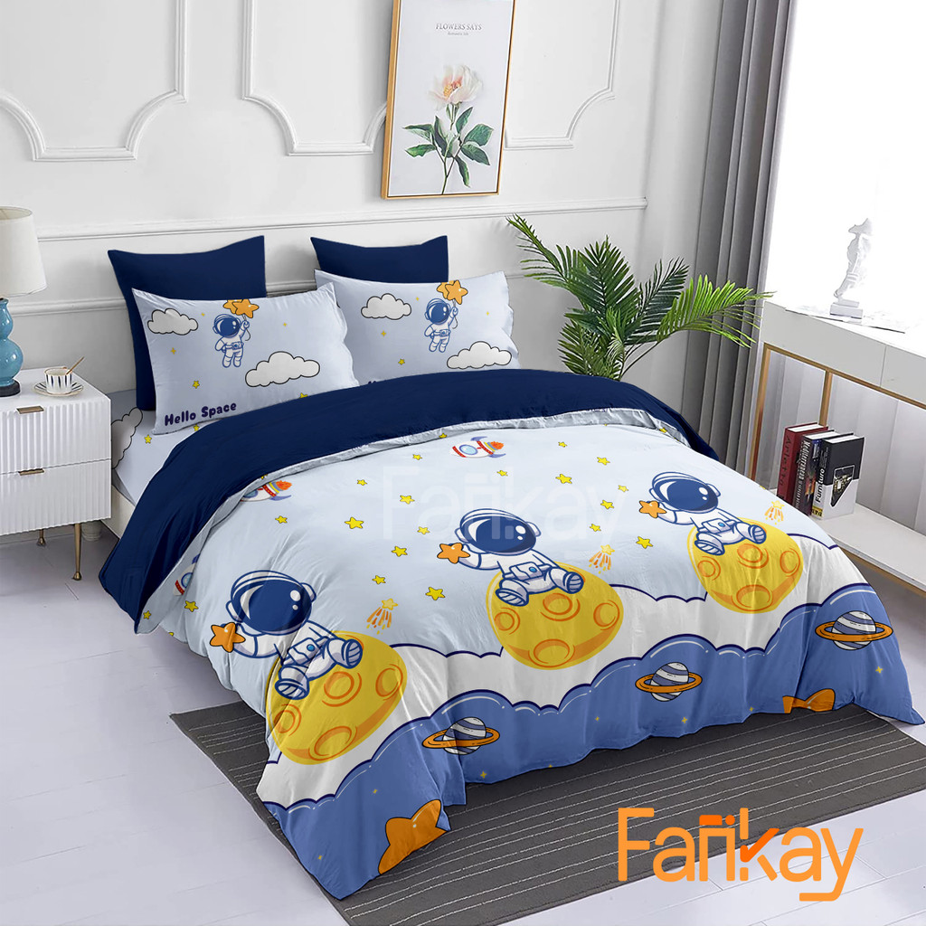 Bed Cover Set Sprei Hello Space Mix Navy Ukuran Lengkap 180x200/160x200/120x200 - Fankay Bedcover