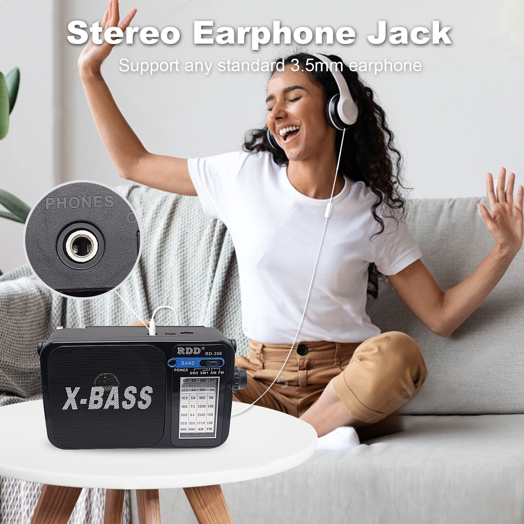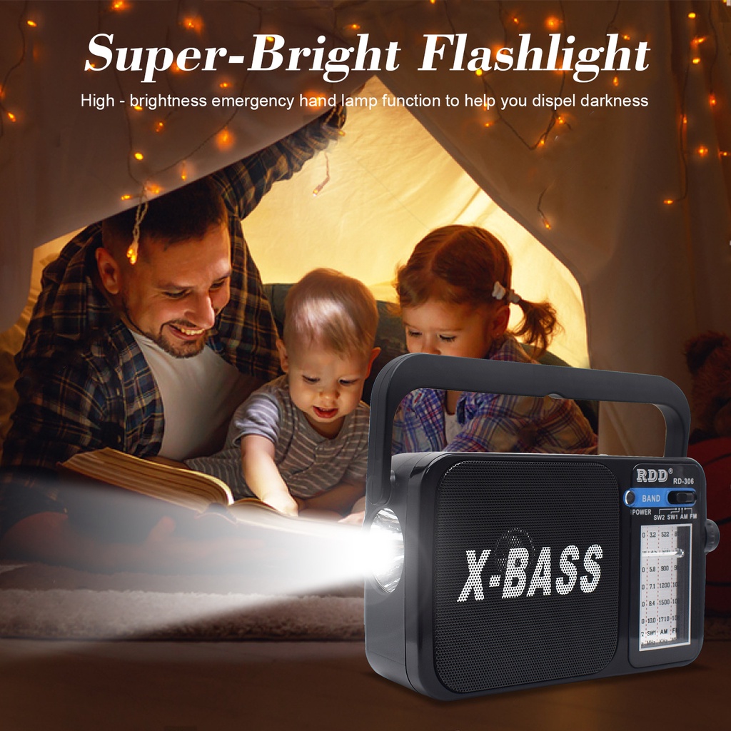 } 100 PERSEN Ori Radio RD-306 Speaker FM/AM/SW1/SW2 Portable 4 Band Pocket Radio mini dengan senter