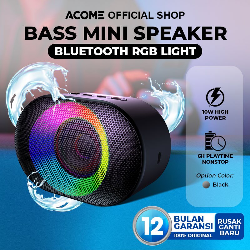 ACOME Speaker Bluetooth Super Bass High Power 5.0 10W IPX6 Waterproof RGB Light Rhyme Rave Party A10