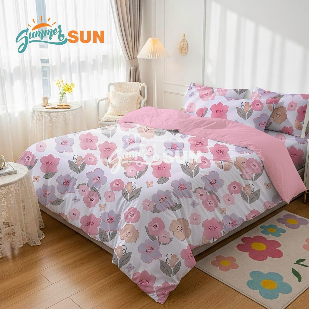 Bed cover Set Pink Amona Mix Plain Baby Pink - Flower - 90x200 - 200x200 - Ukuran Terlengkap - Summersun09