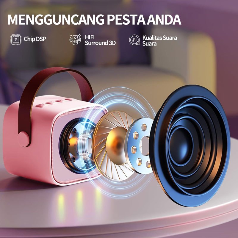 []Mini Speaker Bluetooth 2 mic 1 Karaoke /Bluetooth 5.3 Mini Speaker Karaoke /Speaker Microphone Karaoke Set