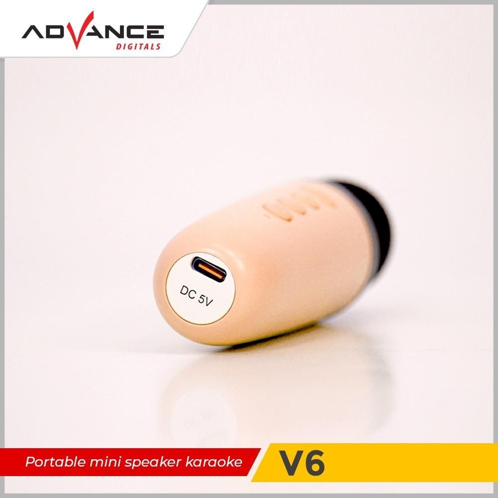 Advance V6 Portable Speaker 2 MIC Karaoke Plus Lampu Bluetooth Karaoke Speaker Komputer Speaker Rak Buku Suara Bass Garansi Resmi
