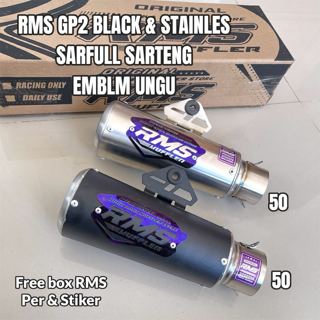 SLINCER KNALPOT RMS GP2 BLACK & STAINLES EMBLEM UNGU TITANIUM INLET 50