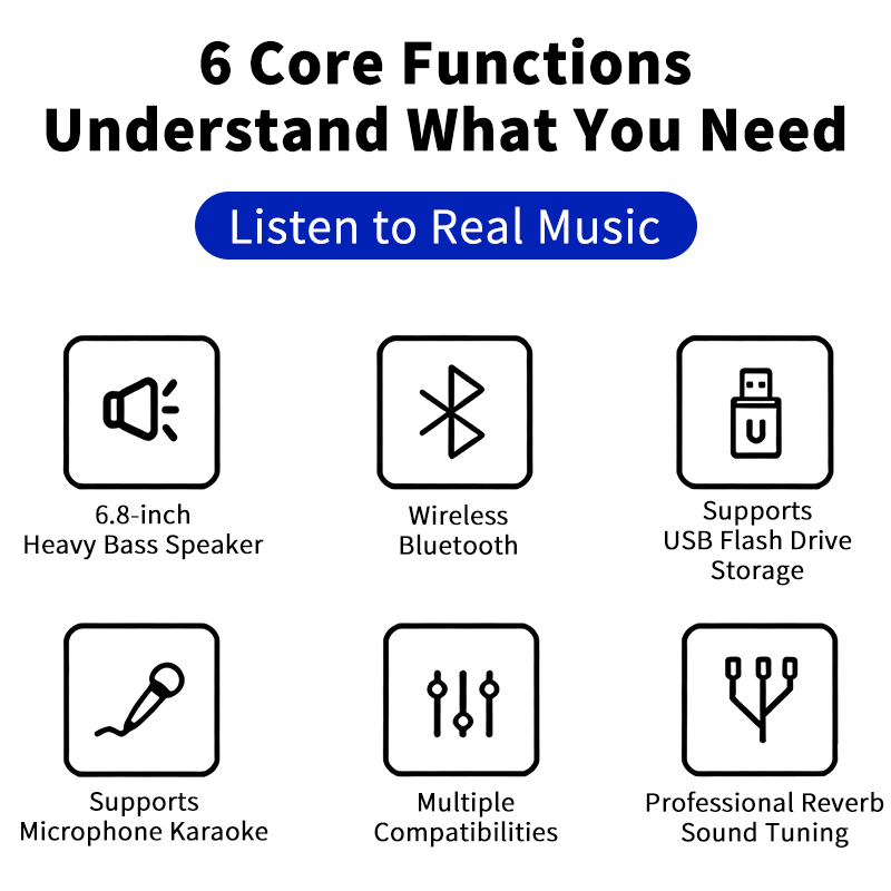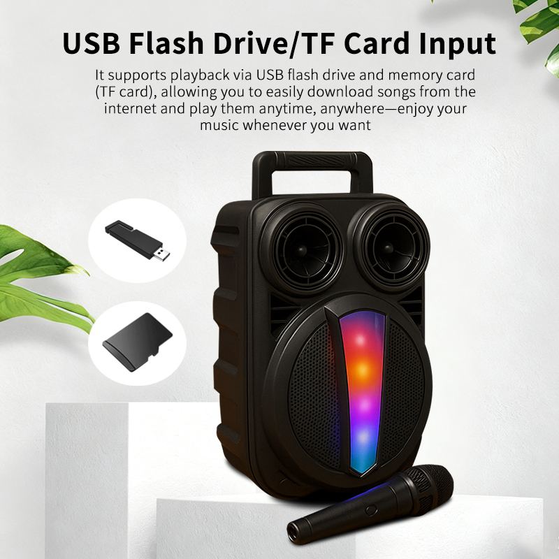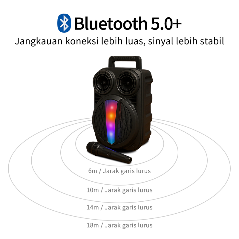 Speaker Bluetooth 6.8 Inch Full Bass 360° Surround Sound Lampu Warna RGB Portable Karaoke Free Mic